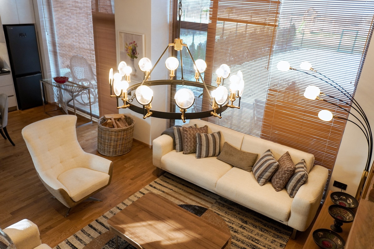 Fully private studio with its own entrance and artistic vibe. Kick back and relax in this calm, stylish space. This guesthouse is run by Gocha and his wife Nino, a warm and creative couple known for their hospitality. Gocha is highly skilled in crafting, and the entire home is decorated with unique handmade pieces, created by him. One of the most unforgettable features? A small cable-car food delivery that brings meals directly to the terrace-a charming touch guests always remember.