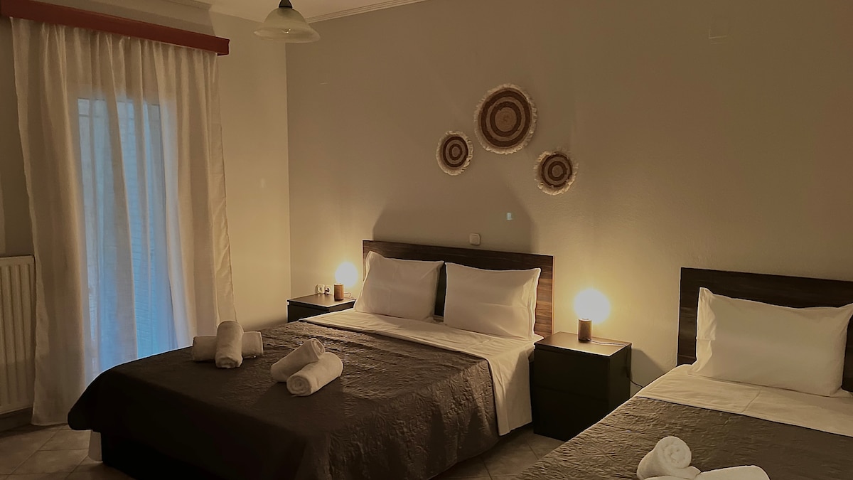 Enjoy your stay at our cozy, stylish and comfortable apartment located in the heart of Kalabaka! This newly renovated space is perfect for a group of friends, families or couples looking for a peaceful stay and can comfortably accommodate up to 6 people. It includes 2 bedrooms, 1 living room, 1 bathroom, a fully equipped kitchen and a storage room and has direct access to our lovely garden where you can enjoy your coffee or meal. Easy access to all essential shops and bus stops for Meteora.