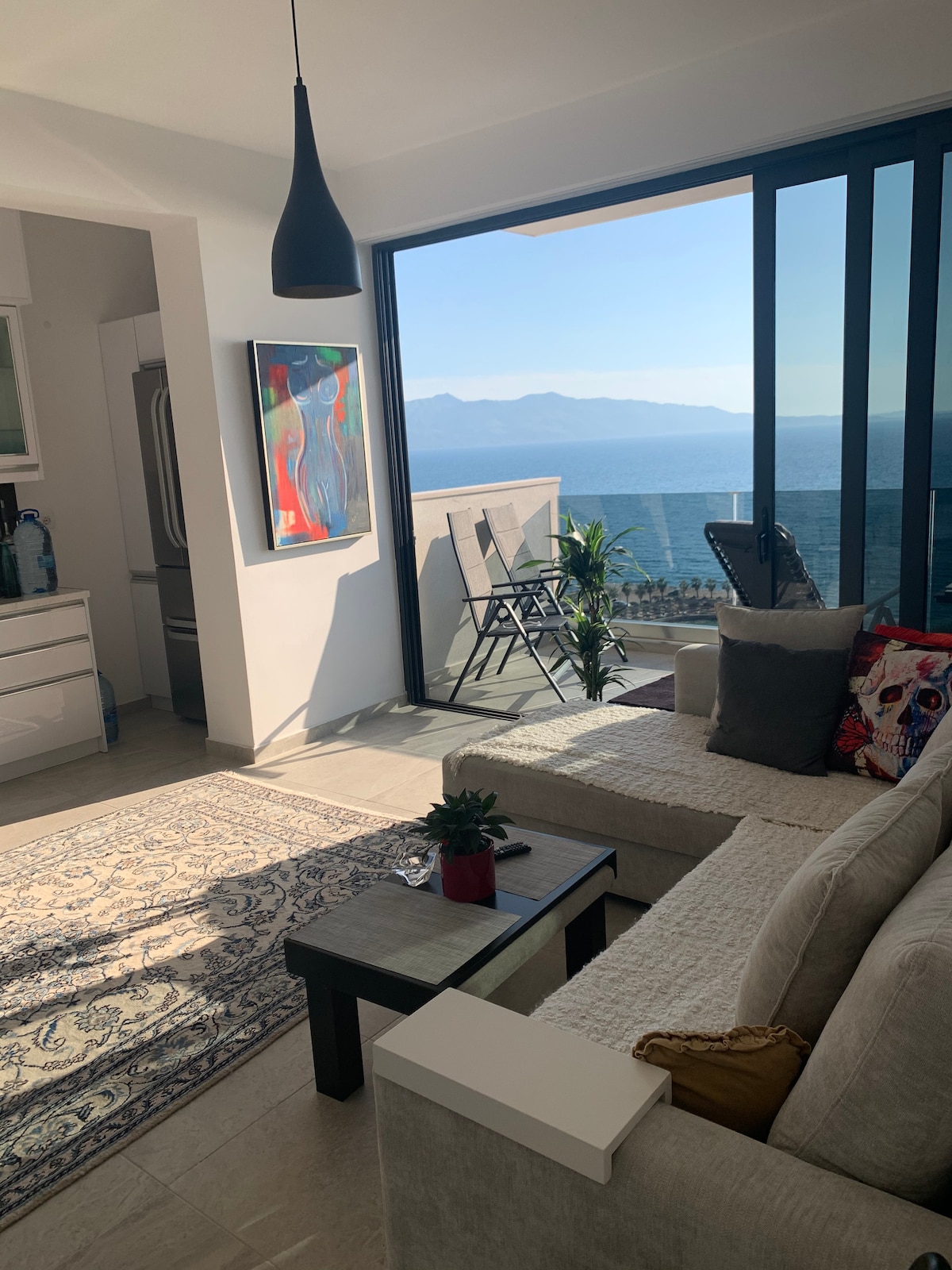 "Luxury Beachfront Oasis" invites you to a dream stay in Saranda, with unparalleled sea views enveloping the space. Every room in this 65 sqm apartment is a testament to modern luxury, designed to bathe you in sunlight and serenity.