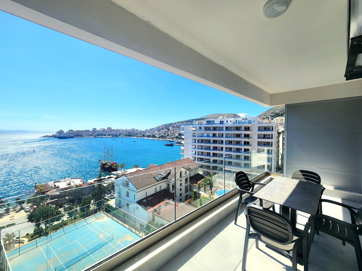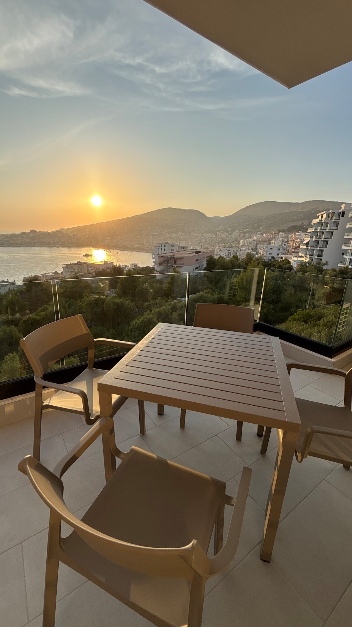 Welcome to Poseidon’s Perch in beautiful Sarandë! Come experience a newly renovated apartment with sweeping sea views. This 1 bed, 1 bath apartment takes indoor/outdoor living to a whole new level with an expansive sliding glass wall. Ample outdoor dining and lounge space will ensure you have a front row seat to spectacular sunsets. Located in an ideal area of Sarandë with beaches, restaurants, markets, and beach clubs in walking distance. Pack your swimsuits, and we’ll see you soon!