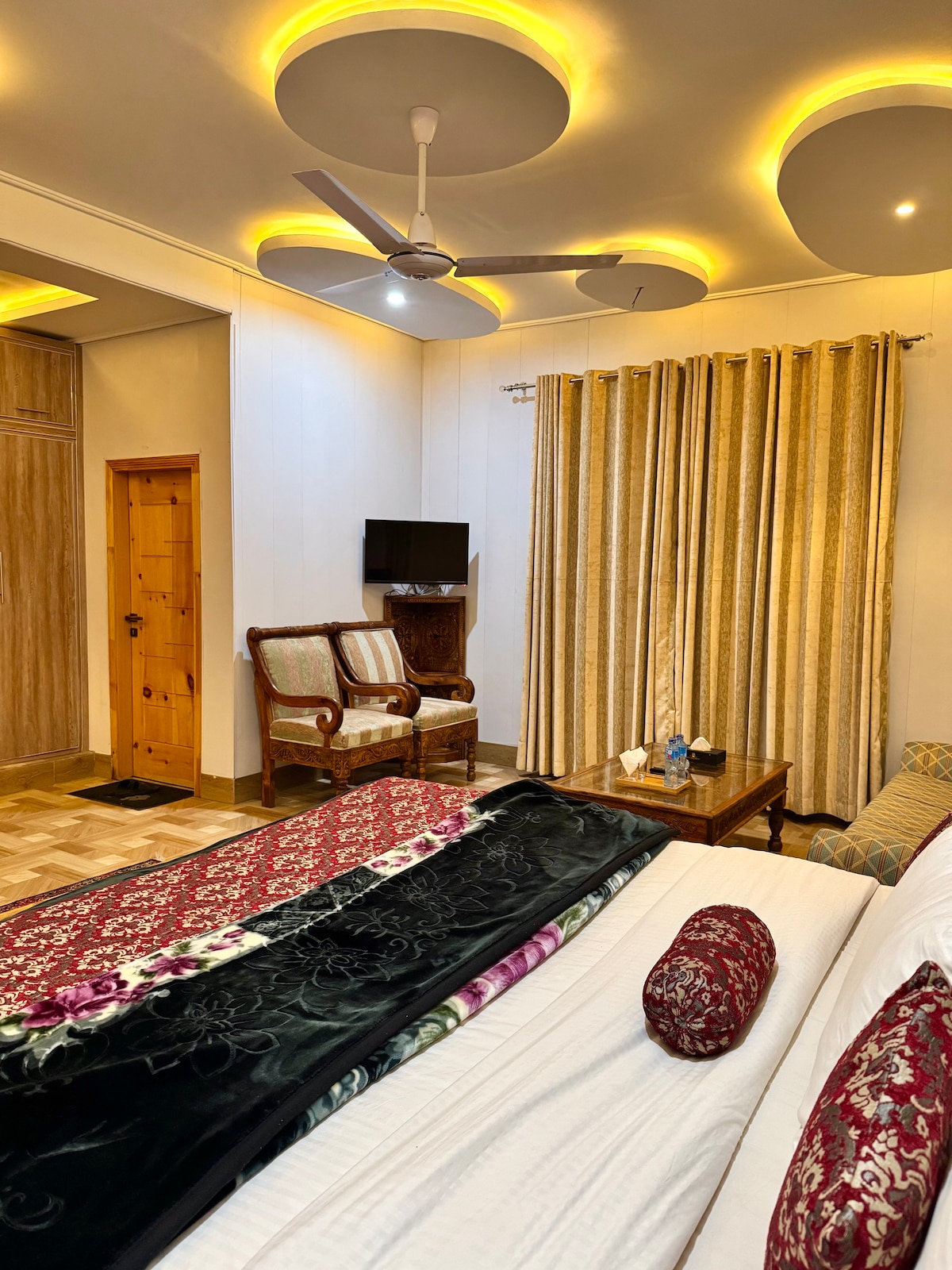 Stay comfortably in our Standard Room at Pearl Regency Kalam, perfect for a relaxing getaway in the heart of Kalam. The room offers a cozy bed, clean interiors, and essential amenities including free WiFi, TV, and a private bathroom. Located near the main attractions, it provides easy access while maintaining a peaceful atmosphere. Ideal for travelers seeking a comfortable and budget-friendly stay surrounded by beautiful mountain views.