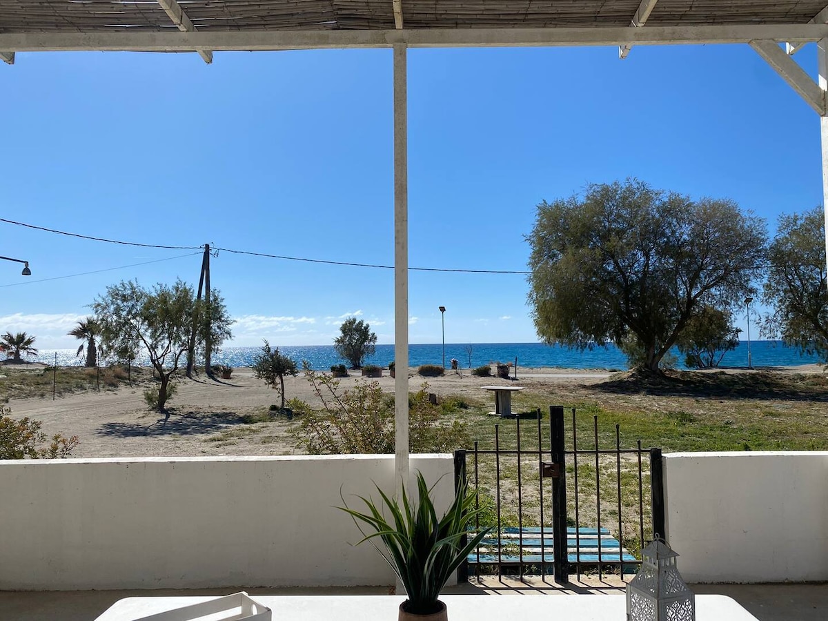 “Zen Seaside House” is a newly renovated retreat in the seaside village of Neo Kalamaki, located on Crete’s stunning South Coast. Just 30m from the sea, the house boasts breathtaking sea and mountain views from its furnished patio. Perfect for up to 3 guests, it offers a serene escape with all the comforts you need for a relaxing vacation. Convenient parking is available right in front of the house, ensuring hassle-free access. 🌊✨