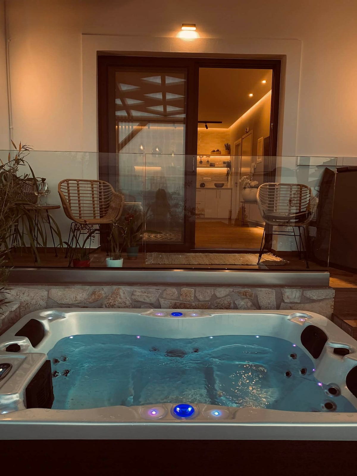 Welcome to TSAPINI in the Mani, nestled between the Taygetos mountains and the Mediterranean sea. Here, amidst  old olive trees and within a very short walk to the beach, you'll find a haven of tranquility and beauty.  Our newly built stone houses invite you to an unforgettable escape to experience the magic of Mani. ~ House REA ~ Whether you are seeking a romantic retreat or a peaceful escape, a private jacuzzi awaits you to spend relaxing times and blissful moments.