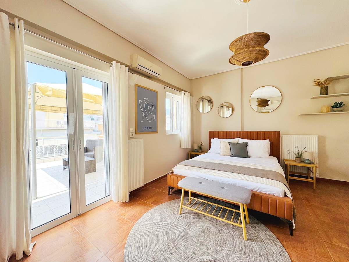 Beachfront stylish penthouse with a spacious rooftop veranda and panoramic views of the Messinian Bay and the city, located in the heart of the seaside promenade. Bright, airy, and elegant, this cozy retreat is perfect for couples, friends, solo travelers, or business guests. Enjoy breathtaking sunsets, relax in the sitting and dining area, explore local bars and restaurants just steps away, and refresh at the sandy beach. Free Wifi.
