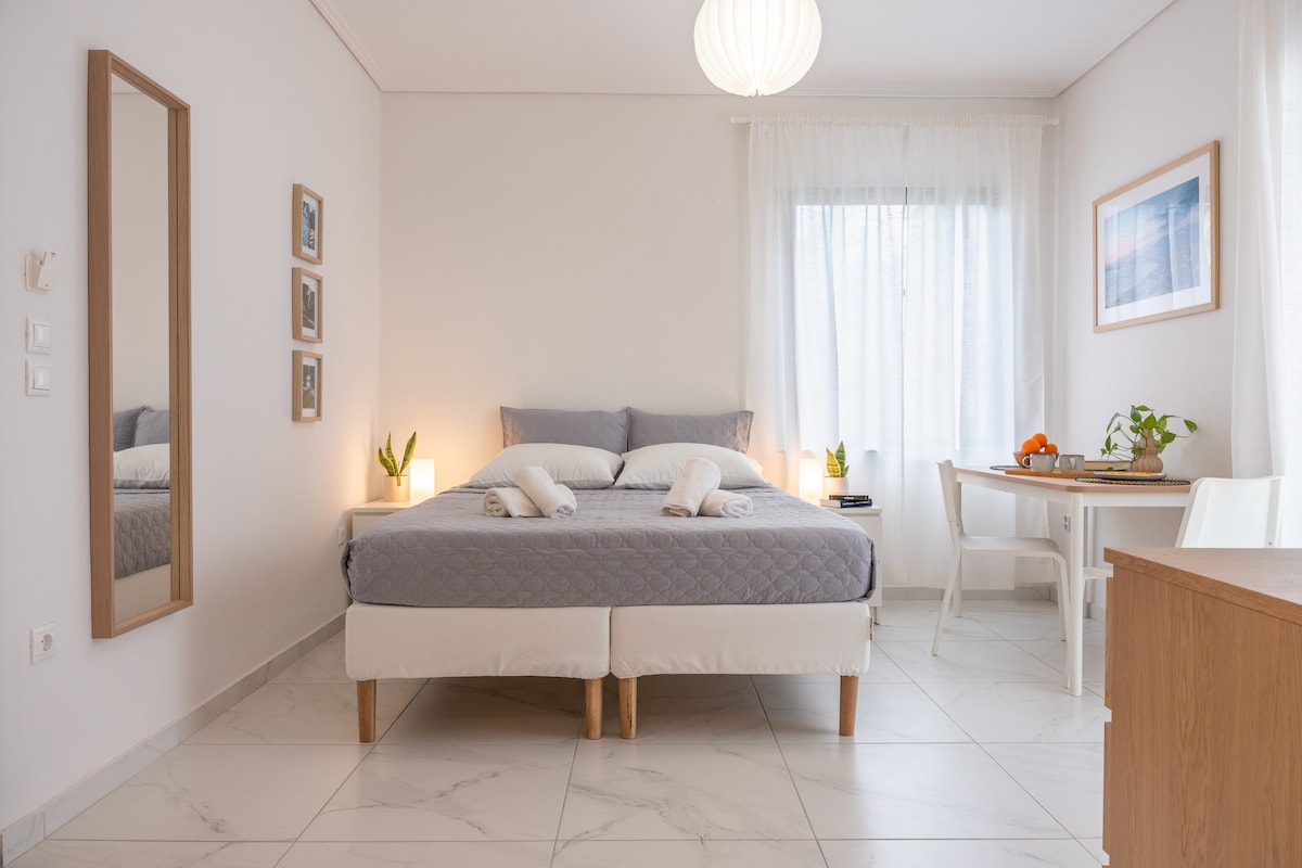✔ Ideal for couples & solo travelers ✔ 10-min walk to the city center & 5-min drive to the beach ✔ Balcony • Wi-Fi • AC Imagine waking up in the heart of Kalamata, just minutes away from the city center and the seaside. The studio is ideally located next to a beautiful park, a 10-min walk from the central square, and 15 min to the picturesque port and marina. The nearest beach is 5 min drive — perfect for a quick seaside escape after a day of exploring. A cozy place to relax and feel at home.