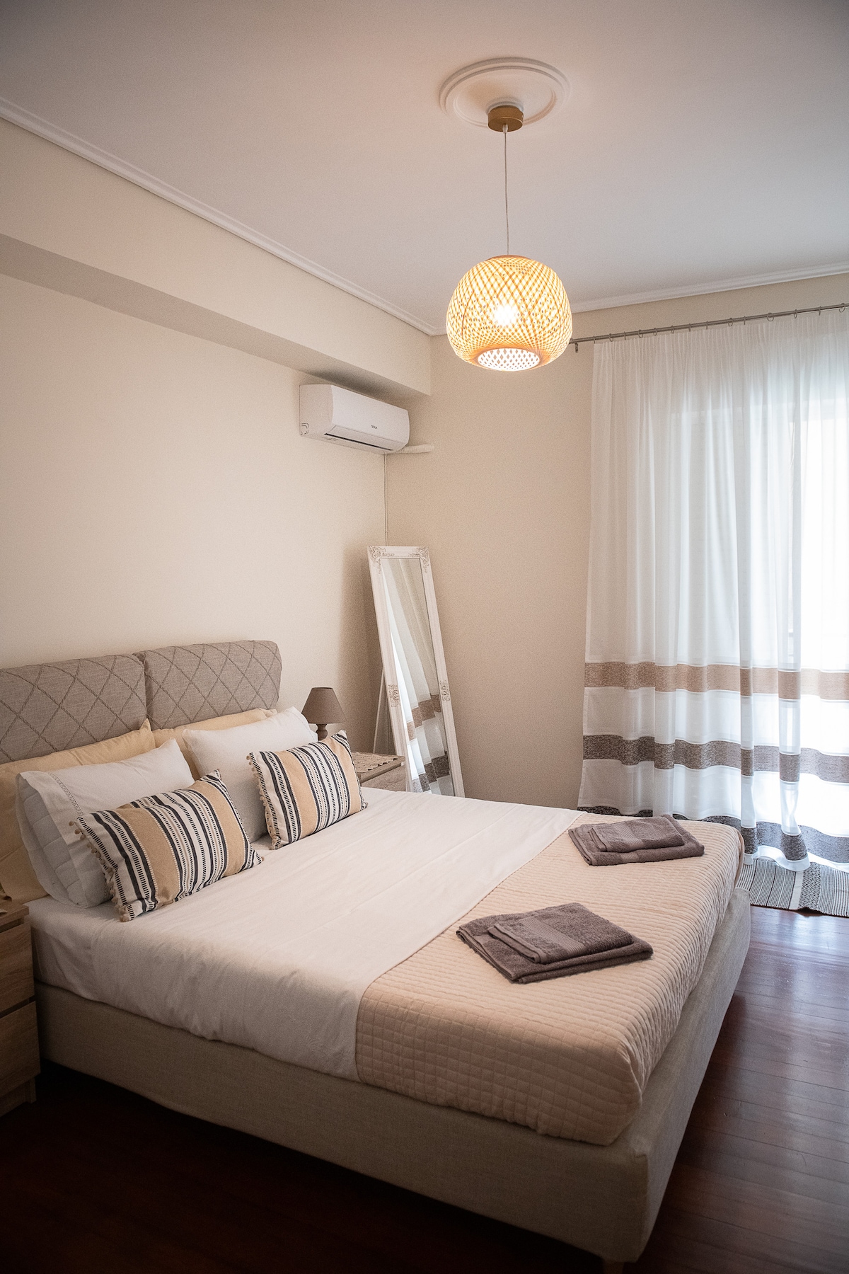 A fully equipped nest (50sq.m) that offers a pleasant and comfortable stay.Ιt is a 10min walk to the city center, the beach and 5 min walk to the beautiful marina.There is a private parking lot and within 1min you will find the Municipal Railway Park,S/M,bus stop,pharmacy and bakery.