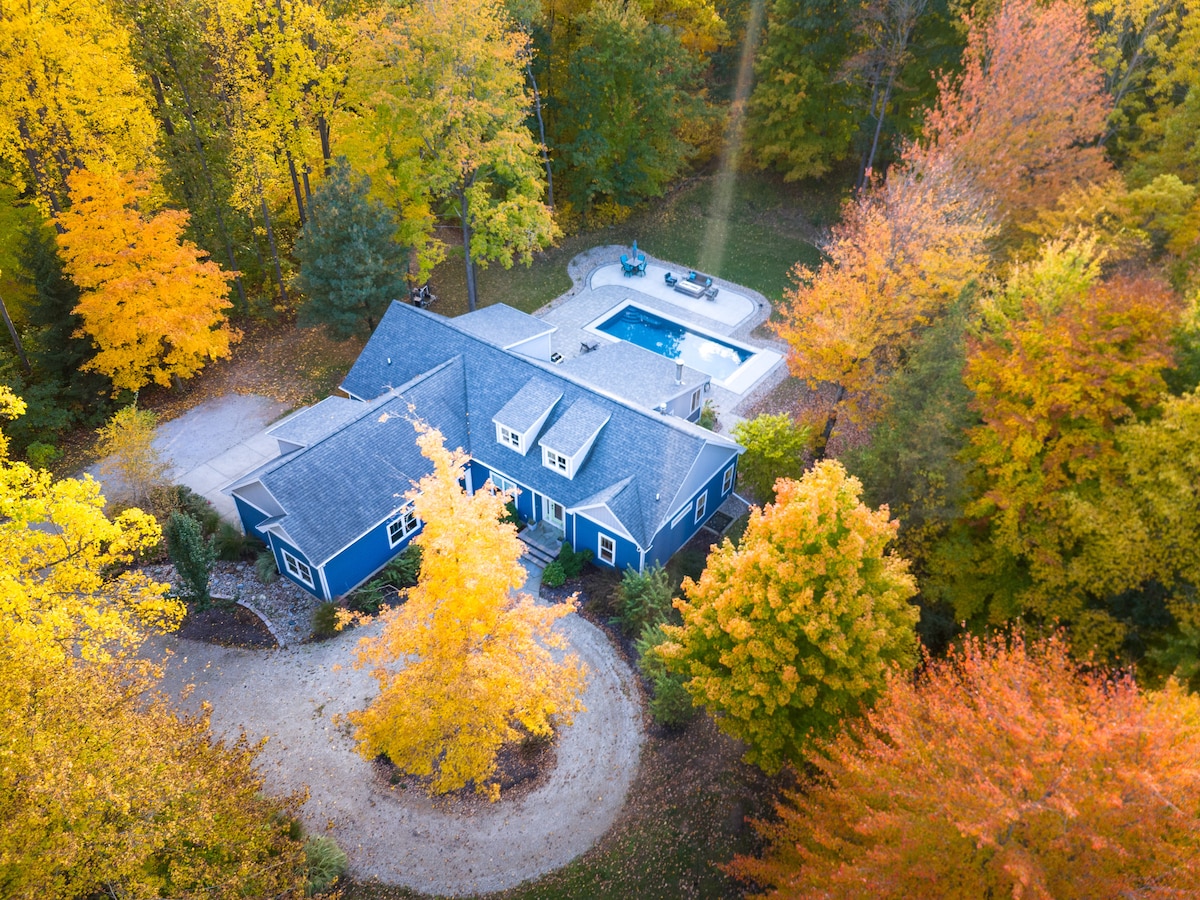 ALLEGAN ORCHARDS: Luxe private retreat 5min. to Saugatuck/Douglas/Fennville Lake MI beaches/sand dunes. - Open kitchen - Private heated pool (fees apply - see house rules) - Private outdoor hot tub (open 24/7/365, no fee) - Indoor fireplace - Outdoor fire pit - Screened porch - Game room: Ping pong, billiards, game table, arcade games - Blue tooth sound throughout - Local area: Saugatuck/Douglas ("Art Coast of MI"), award-winning destination: Restos/Antiques/Boat/Hike/Golf/Wineries/Breweries.