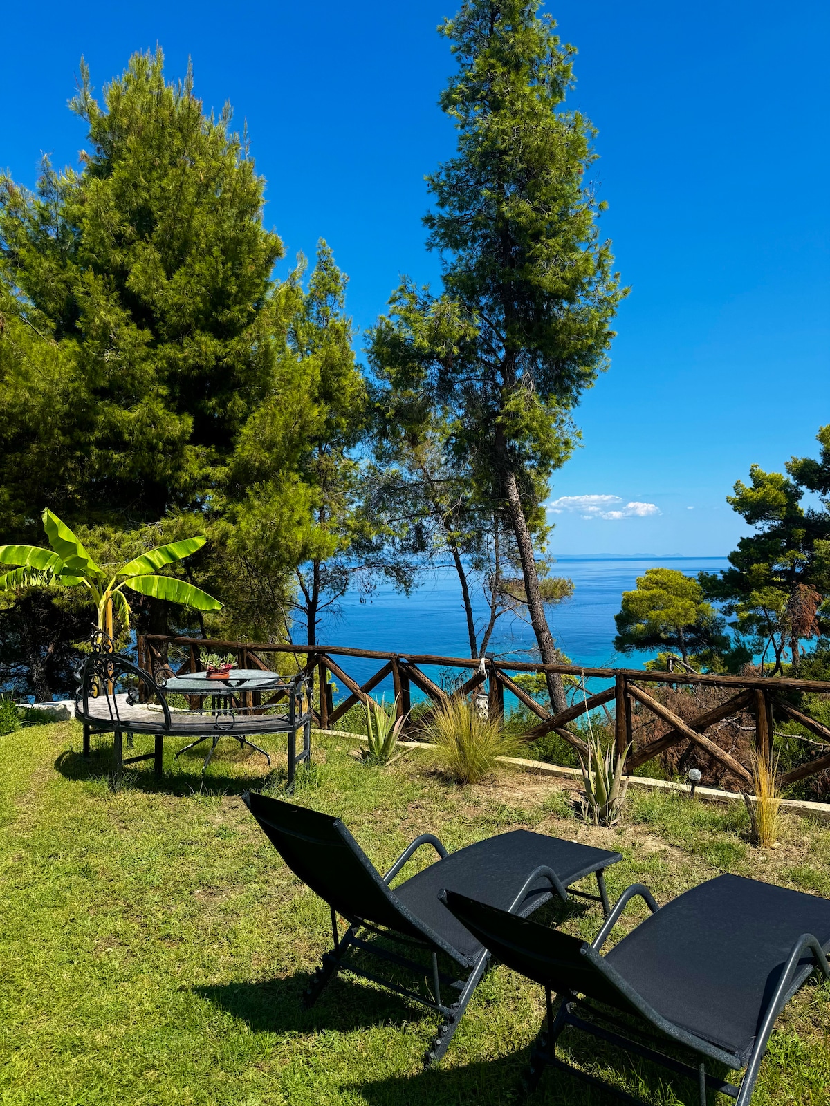 You wake up, the sun is rising behind mount Athos. You enjoy a cup of coffee, while the dolphins jump on the horizon. You walk to the beach and the only thing you can hear is the sea. You cook outside, watching the boats passing by and the seagulls chasing the fish. Now, it's time for drawings and board games. Finally, you have a glass of wine, waiting for the moon to rise behind the hills.