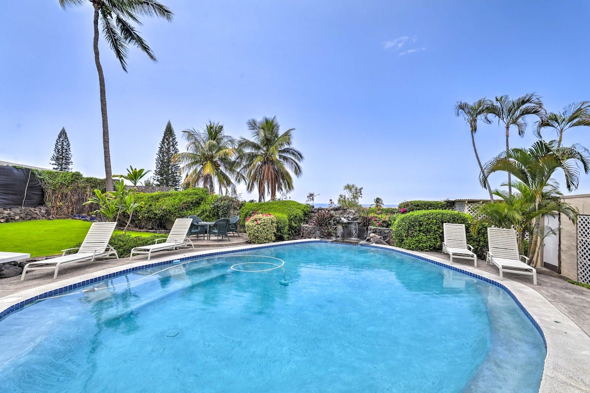 Nestled within the lush oasis of Kohanaiki, this 3 bedroom, 2 bath home awaits as your ideal Hawaiian retreat. Offering a spacious living room and chef's kitchen, it's made for memorable family gatherings. Surrounded by tropical greenery, you have ocean vistas and stunning sunsets from the comfort of the fully screened lanai. With convenient access to downtown Kona (6 mi), the airport (7.5 mi), and the pristine beaches of the north end, like Kua Bay Beach Park (10 mi).