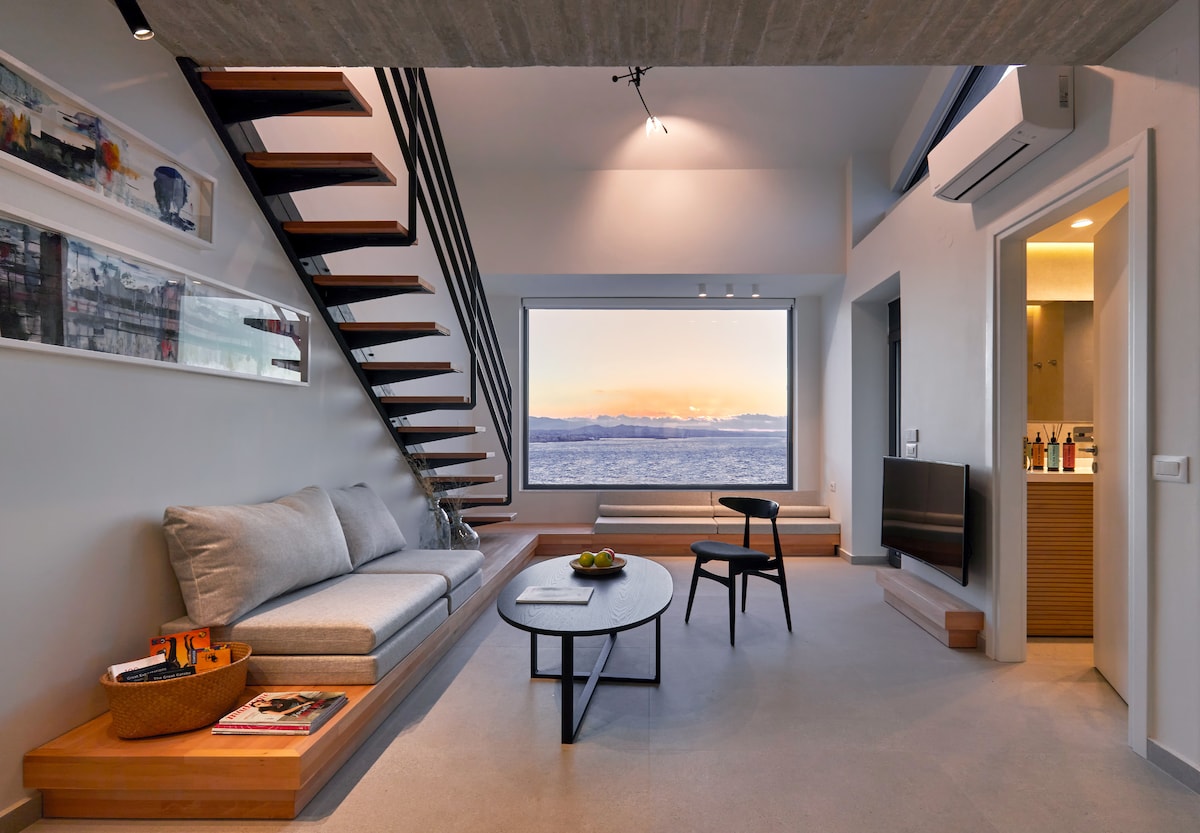 The seaside Villa Hydrobates stands proudly on the rocks and is characterized by high aesthetics with stunning panoramic views of the Cretan Sea. It features outdoor jacuzzi with the possibility of heating and is fully equipped, providing guests with a comfortable and relaxing stay. Heated jacuzzi is charged an additional 40 euros/night and requires 2 days notice in advance.