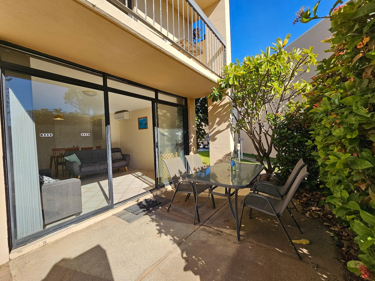 A tranquil ground floor unit with spacious coutyard, nestled amongst the Riverview appartments with Pool, BBQ Area, Gym, Tennis Court and Playgrounds within the facility and the River right across the road. It has a reverse cycle split system air conditioner and a 40 Inch Smart TV. The kitchen has a Microwave, stove, oven, fridge/freezer.