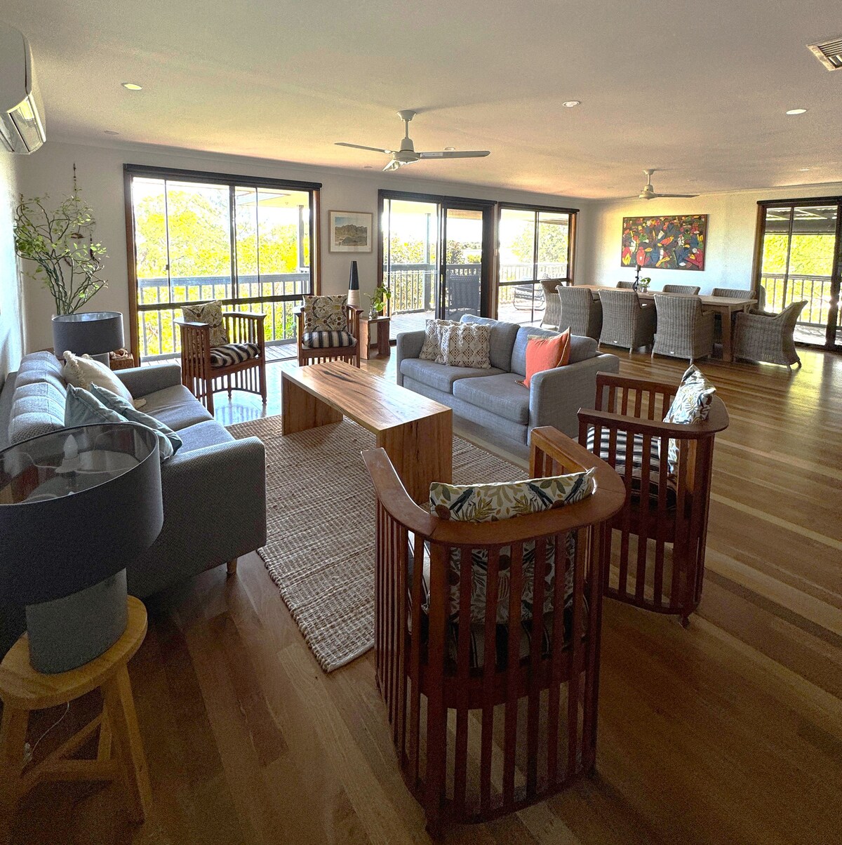 This stunning, newly built holiday home is just a few minutes drive from the towns centre. A very large and spacious property with plenty of room for boats and cars on a couple of acres overlooking the Murchison River and backing on to the Kalbarri National Park. We can accomodate up to 12 people so bring your family and friends. The property is fitted out with all new appliances. The outdoor dining area overlooks a large grassed area with river views. NO CARAVANS / CAMPER TRAILERS PERMITTED