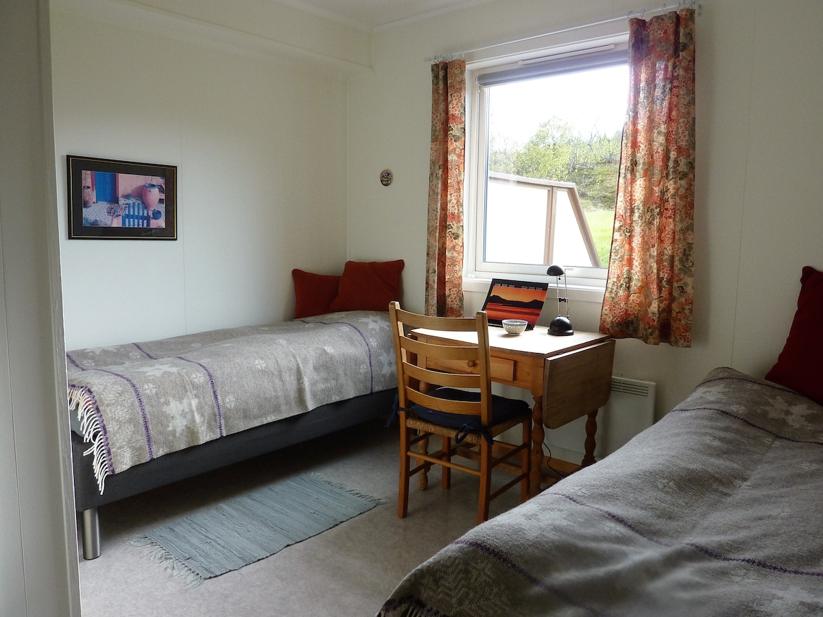 Ideell overnatting for 2 personer. Sove alkove med dobbel seng, stue med sovesofa, kjøkken, bad og arbeidsplass. Egen uteplass med bord og stoler. Gratis parkering. Naturskjønne omgivelser ,omringet av fjell og hav! 15 min kjøretur fra flyplassen og 25 min til Tromsø sentrum. 5 min til dagligvarehandel.
