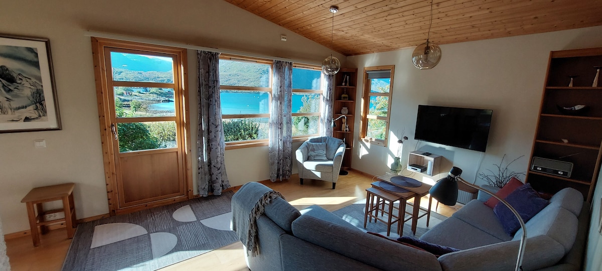 New aparthment from 2014 with a stunning view over the fjord and the mountain. Quiet place at the Fjord near to the town, and near to nice places both for walking in mountain, and for skiing downhill and Cross cuntry. We can see the Northern light.