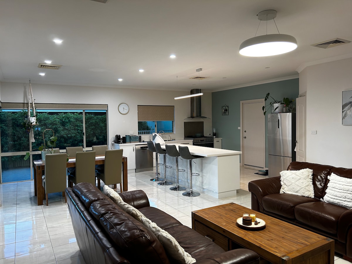 Four-bedroom family home, studio in backyard as 4th bedroom. Large backyard and pool. Diggers and Dealers Accommodation for 2026 is available. Message host for prices and specifics