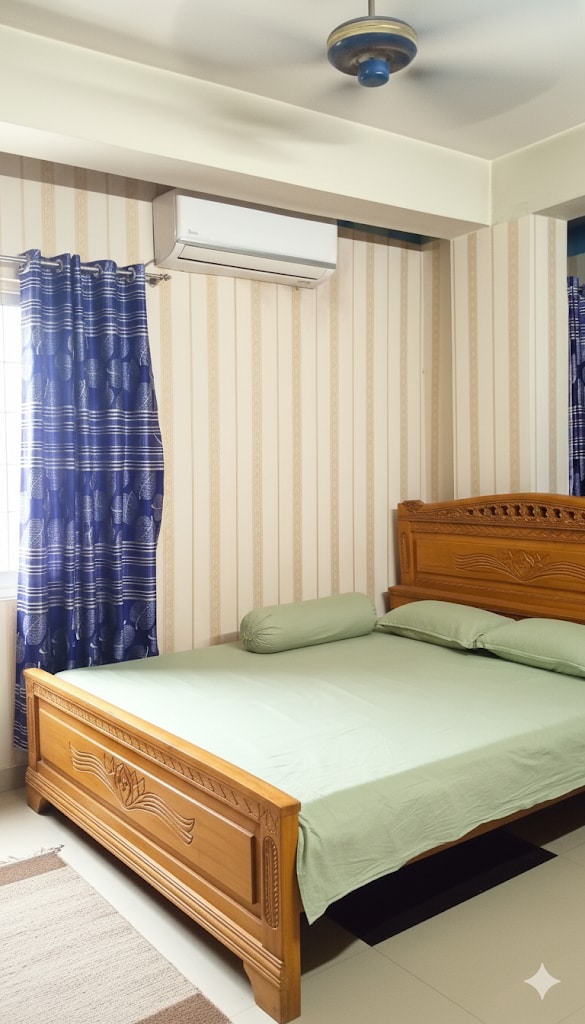 Discover your dream stay in Dhaka! This newly furnished 3BR, 3-bath flat boasts AC in all bedrooms, plus free WiFi. Relax in comfort with new beds, sofa, TV, & a sparkling clean, fully-equipped kitchen including new crockery. Amenities: washing machine, 2 fridges, microwave, hairdryer, iron, rice cooker. Prime location: 20 mins to Airport, 5-min walk to mosque. Nearby grocery shops & restaurants (5-min walk). Safe neighborhood, free parking. 7-seater car available for daily rent.