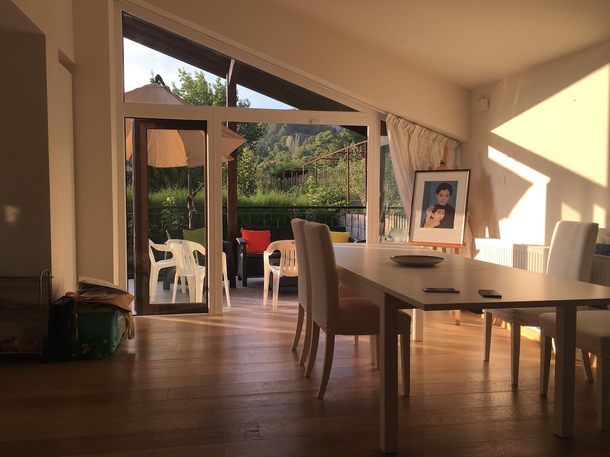 Nestled in a serene environment, our open-plan apartment offers an ideal haven for a tranquil holiday. Surrounded by enchanting forest and river vistas, its unique location ensures both peaceful seclusion and convenient access to restaurants and grocery stores. Serving as a launching point for hiking and cycling adventures, it caters to those seeking an escape from everyday stresses. We joyfully welcome guests from around the world to relish in the serene ambiance we proudly provide.