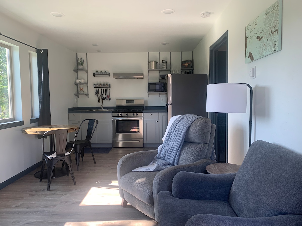 Fully equipped 1 bedroom, large deck attached overlooking garden, lake, Kenai Mtn. Range. Beautiful view. Outdoor grill, lawn furniture, fire pit, quality/comfortable bed & linens, three miles to Bird Homestead golf course, two miles to the Kenai River where world class salmon fishing, beautiful lake in front of property. Cornhole boards for outdoor fun activity. Fire pit for romantic evenings.