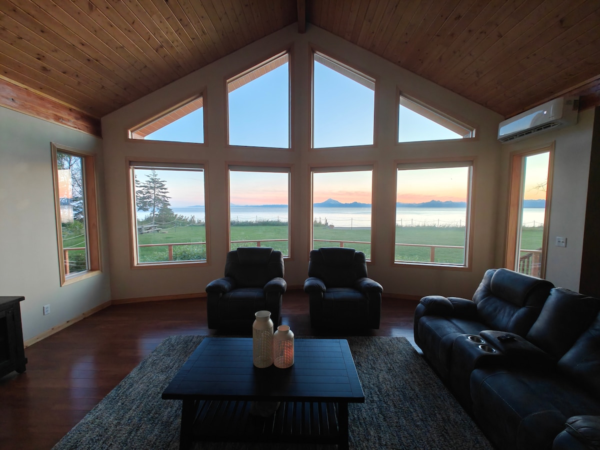 This uniquely designed cottage is perfect for your dreamy getaway! Relax in the hammock to the sound of the waves while watching eagles soar, salmon jump & otters floating by. With floor to ceiling windows & spotting scope included, you won’t miss a thing! This 3bd/3ba home is furnished with luxury linens, a fully stocked kitchen, smart TV’s, bathrobes, pool table, a dreamy view, and only 6 min to Kenai.