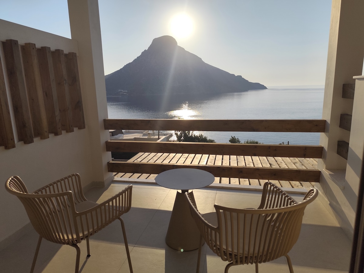 Newly built suite "AMMOS" with panoramic view of the area and the amazing sunset from our verandas. In the centre of Masouri, yet, in a quiet and isolated spot. Designed to accomodate families of four to five persons, with one separate bedroom and one double bedded traditional "kratthos". Kitchen is fully equipped to meet the demands of our guests. Next to "AMMOS", is also "THALASSA" suite, for four persons: www.airbnb.gr/rooms/27496967.