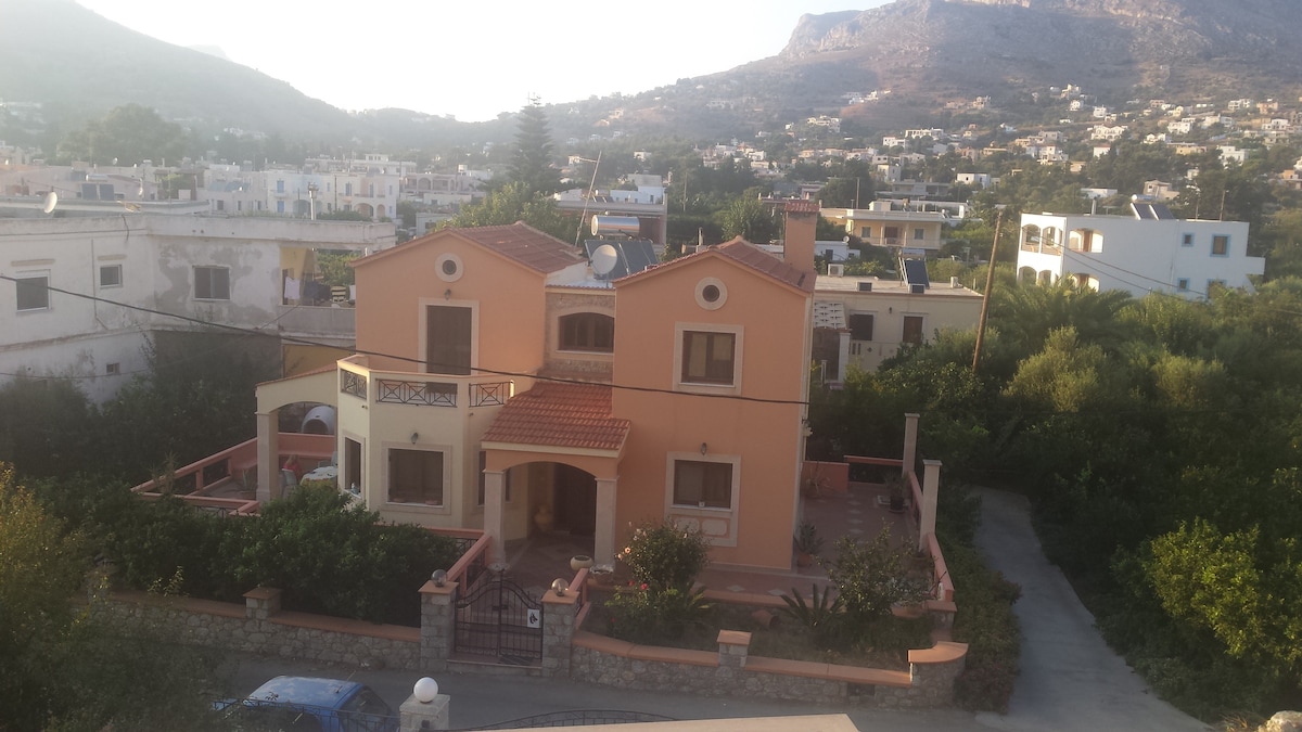 Combines unique mountain and sea views. With all the amenities to a wonderful stay in a quiet and beautiful environment with a wonderful view, where the visitor can enjoy his breakfast or dinner, facing the magnificent view of the mountains with the famous climbing fields, but also the sunset in the unique Aegean Sea. From the field that stretches in front of the house, guests can enjoy the delicious products of Kalymnian land.