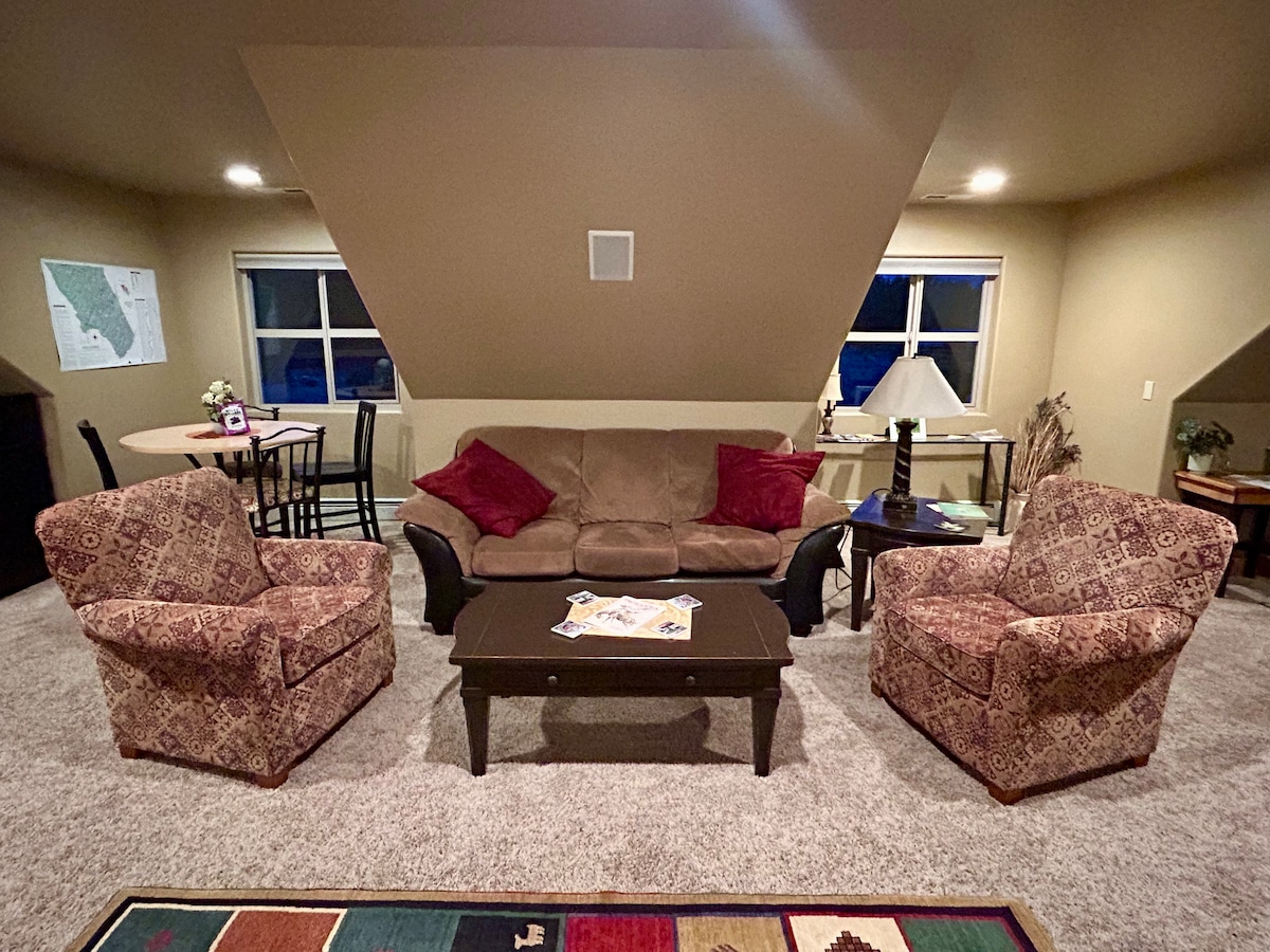 A 1000-sqft one-bedroom basement guest suite in Kalispell, Montana; a 40-minute drive from Glacier National Park! Two large egress windows, and a few smaller ones, let in a LOT of natural light! The bedroom has a queen-sized mattress, a dresser, & closet space. The common area has a full-sized spring-mattress futon, a full-sized fold-out sofa bed, & an air mattress for as-needed use. The kitchen is spacious and open. Lastly, the shower is a hidden gem! Great for a single family or close friends!