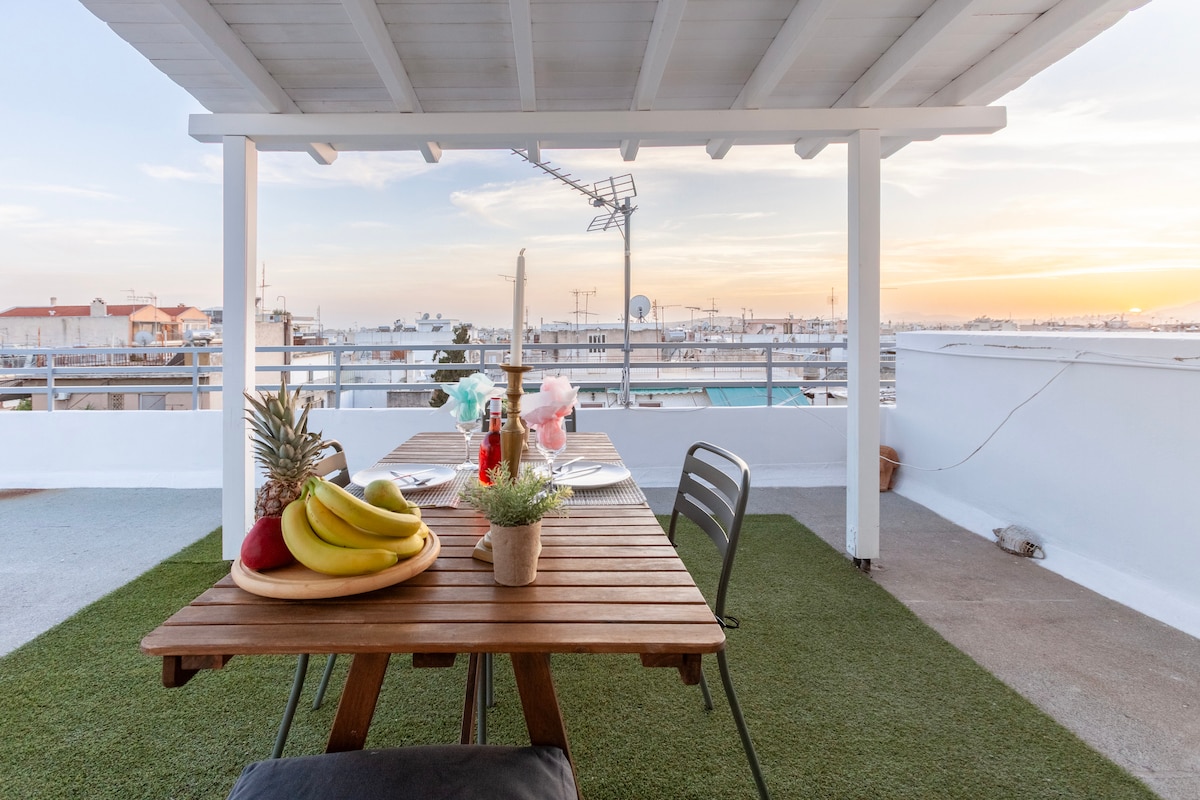 Enjoy our cozy 6th floor loft apartment offering exclusive access to a stunning 360-degree rooftop terrace. It's the perfect spot to be captivated by the breathtaking Athenian skyline. The flat features a comfortable bedroom, a modern bathroom, and a small kitchenette, making it ideal for a relaxing getaway. Whether you're here to explore the vibrant city, discover the local neighborhood, or simply unwind with a takeaway on the terrace or a Netflix binge, our apartment is your perfect home base.