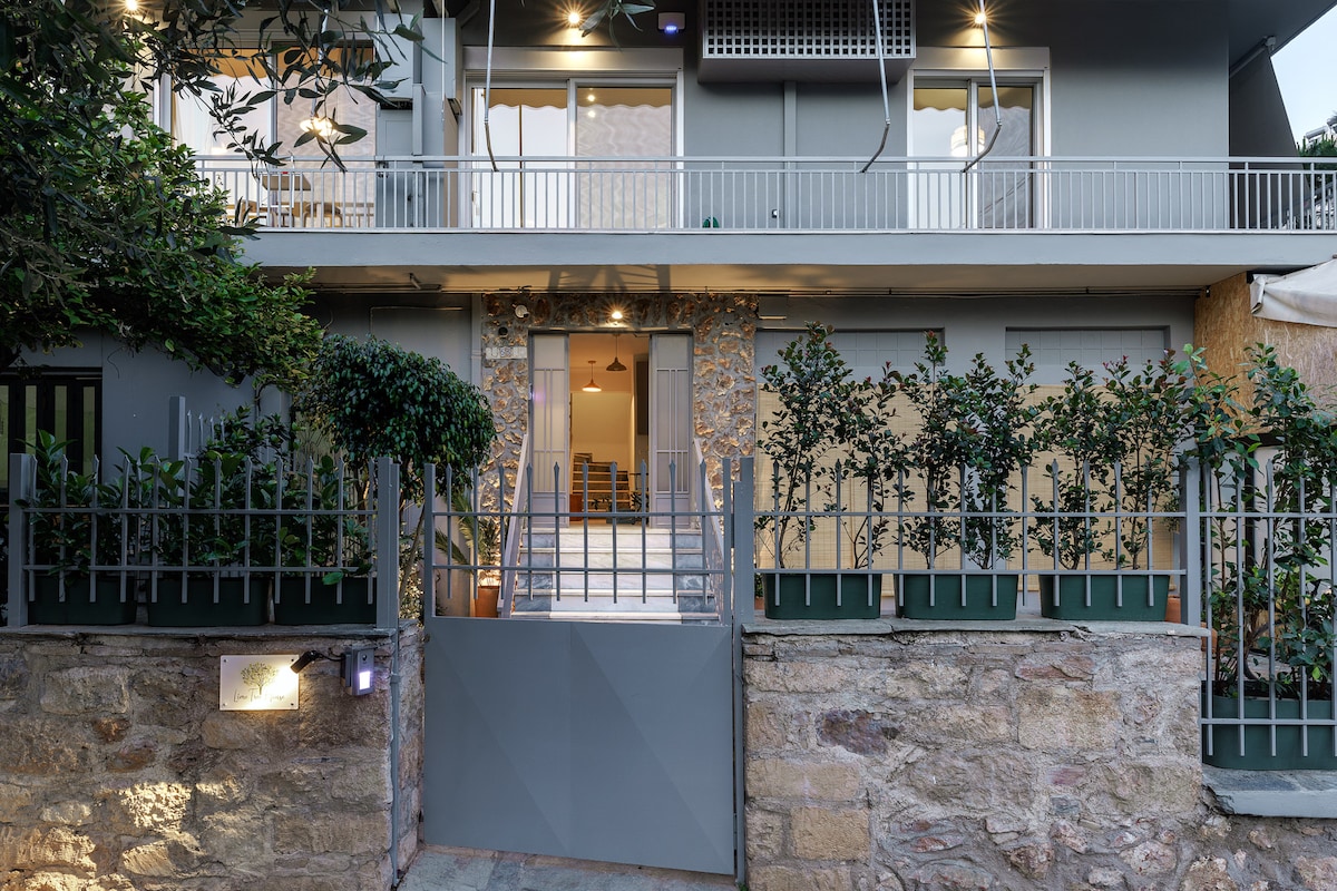 The "Athenian Yard Near Acropolis" is located in a historical neighbourhood of Philopappou Hill in Koukaki. In a close proximity from the Acropolis and the Contemporary Art Museums it is also close to taverns and vibrant bars. The house is surrounded by traditional buildings of a significant Athenian architecture. Laying around a private garden with citrus trees and Mediterranean herbs, it offers a great balance for an outdoor and indoor leisure, while it is equipped with all modern amenities.