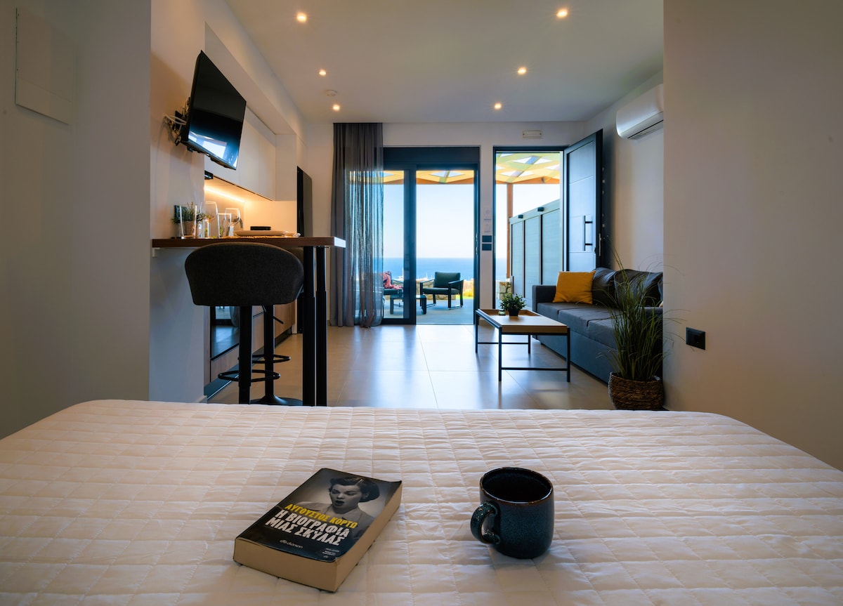 KYANO is the ideal choice for those who wish to visit Rhodes for a short or a long stay. The apartment is suitable for those who simply want to spend their holidays, or even for those who wish to combine work with holidays. In short distance from organised beaches. The balcony is ideal for sipping a cup of coffee or a glass of wine, while enjoying the amazing sea view without the visual restrictions of the city.