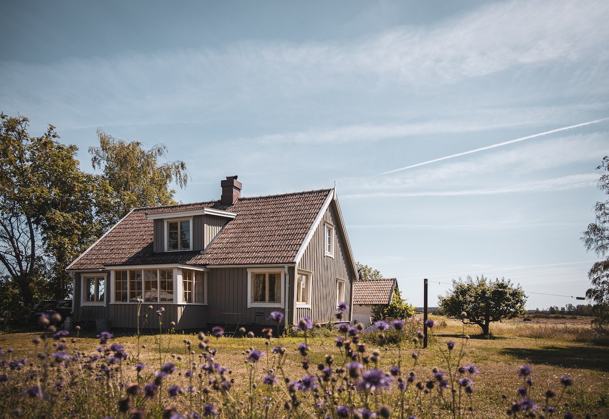 Wonderful, old swedish cottage with big garden in a small scale farm with chickens, pigs and sheep. A countryside dream, fully equiped and new renovated kitchen and bathroom. Access too wood fired Sauna in the garden.