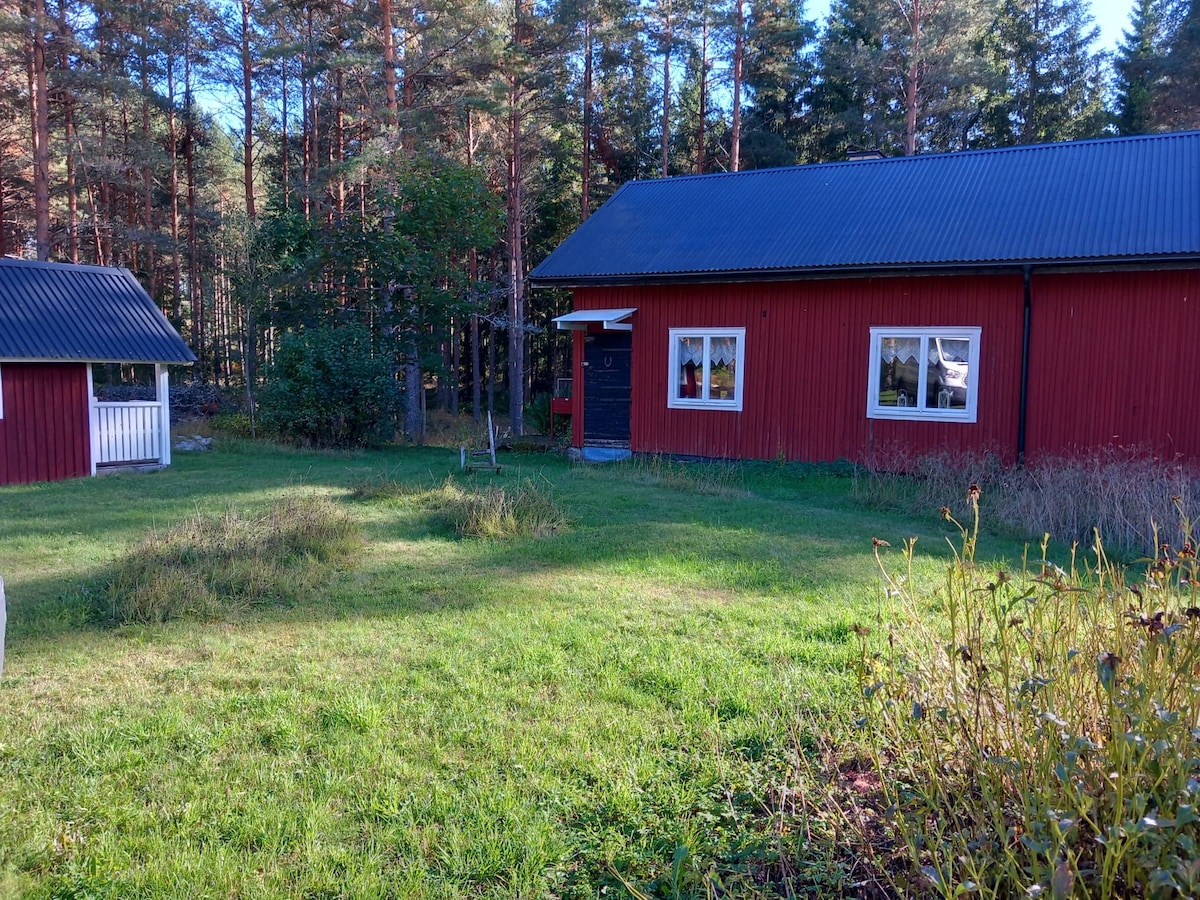 A small guest house with room for 4 people, located on the country side. Kitchen, fridge, freezer, coffee machine, toaster, stove, toilett, Tv, dvd, play station 3.....if you can not find the second bed room... look again and it helps if you have seen the movie Narnia :)....There is no shower in the guest house, but an out door shower in the garden… also no wi-fi in the guest house. A peaceful and quiet environment in middle of the nature....