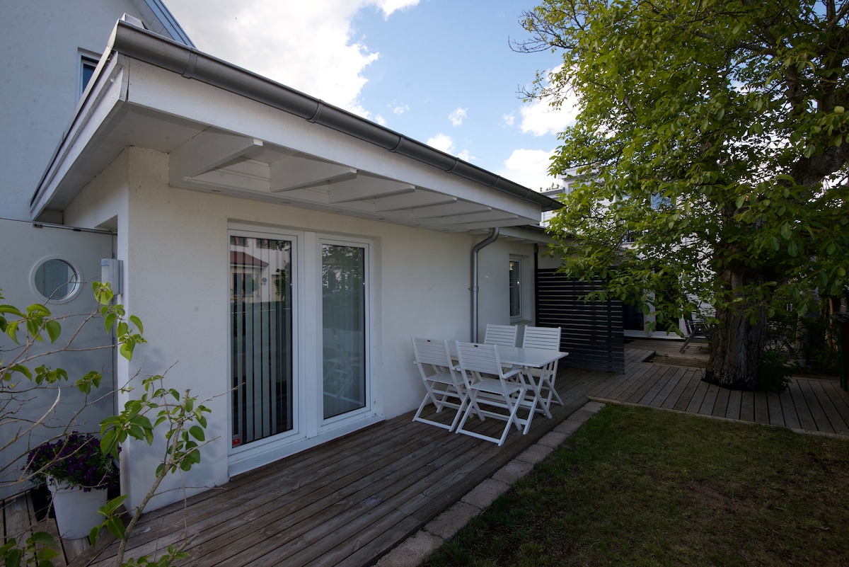 Cosy summer house. Perfect for those who want to stay central but still close to the nature and sea side. Living room on the ground floor with a beddable sofa for two. One bedroom with a single bed and one with a double bed on the first floor. The Villa is built in 2010. It has bathroom with toilet, sink, shower cabin and washing machine. All new, neat and clean. Modern and fully equipped.