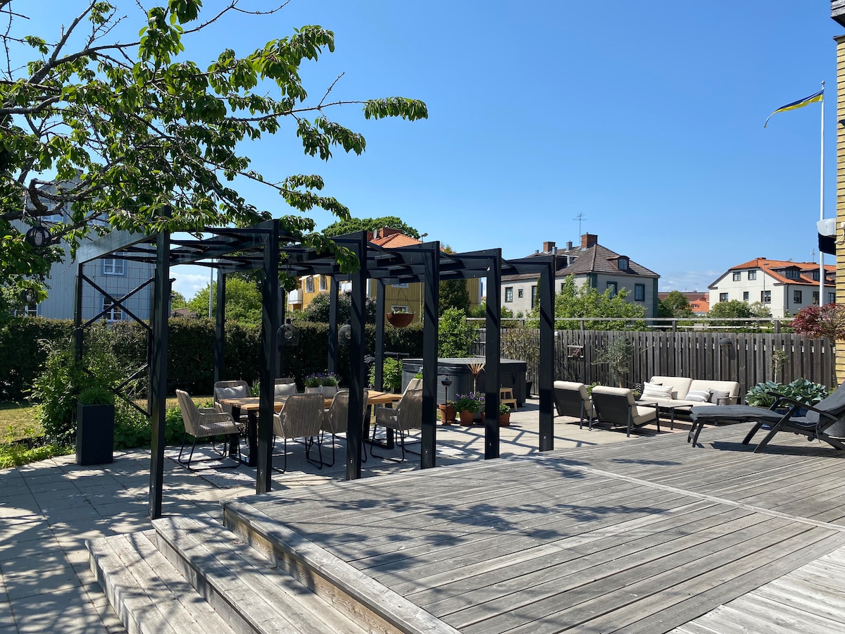 Villa/Radhus i toppklass på 155kvm. Gång avstånd till strand/bad, centrum och Kalmar slott. Huset är modernt inrett med stora öppna sällskapsytor på entrén plan. Entréplan har toalett och matplats för 8 personer. Från kök och vardagsrum finns 2 stora glasparti som går att öppna hel mot trägården som ligger i söderläge. På övreplan finns 3 sovrum med 4 bäddar, max 5 personer, 2 stora balkonger, stort badrum med dusch, tvättmaskin/torktumlare. Allt i toppskick.