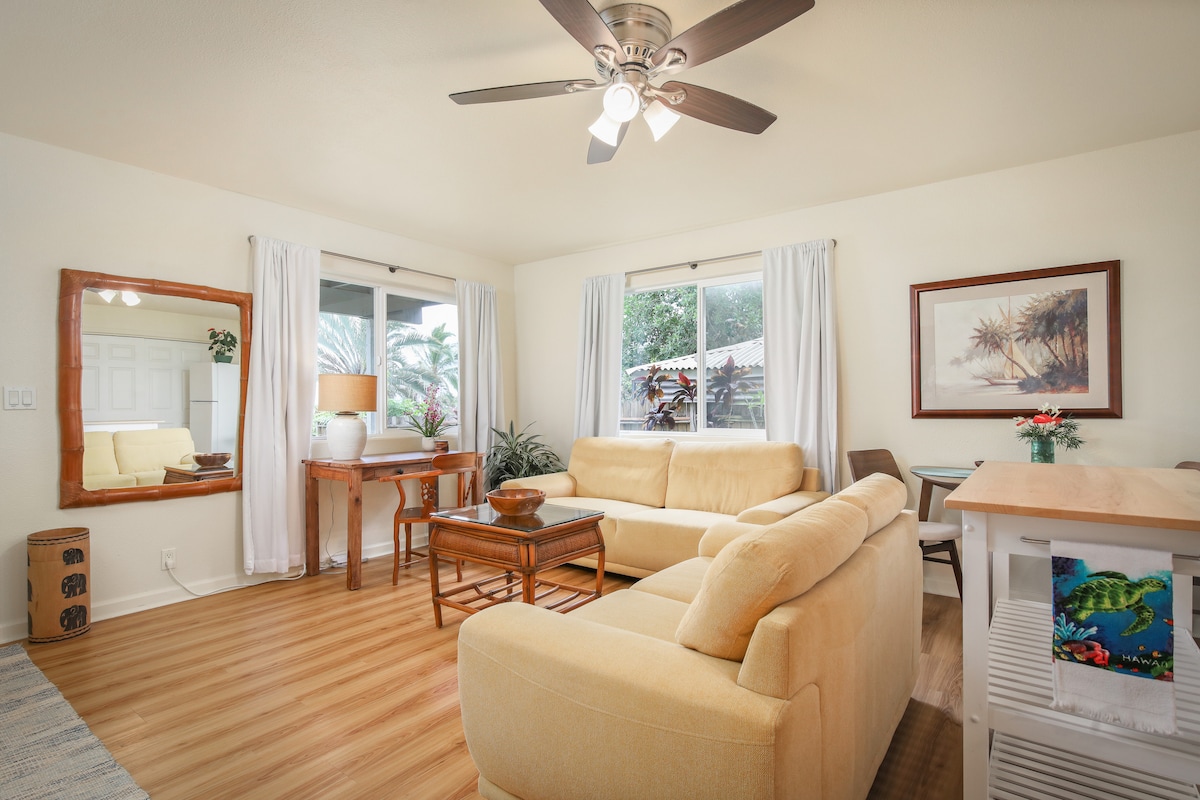 Enjoy all the comforts of home in this stylish guesthouse in the heart of Kailua Kona. This detached one bedroom ohana is centrally located - just minutes from the airport, shops, restaurants and some of the best beaches on Hawai'i Island. Experience Hawaii away from the hustle and bustle of resorts and overcrowded condominiums and stay where the locals live! The designated parking space is just steps from the front door. Private, clean, and convenient.