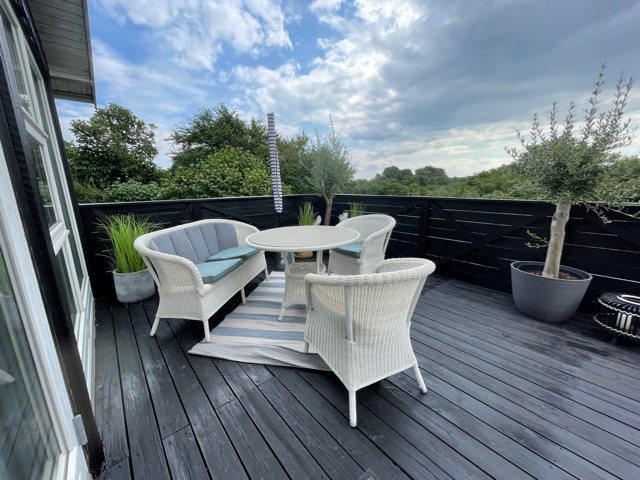 112 m2 lejlighed på 1. sal med egen tagterrasse på 15 m2. Fælles indgang med udlejer. Lejlighed med moderne køkken- og badefaciliteter. Klar til familieferie i landlige og naturskønne omgivelser, med kun 5 km til badestrand. TV med chromecast for streaming, og fri Wi-fi. Parkering ved boligen. Mulighed for tøjvask og tørring i kælder.
