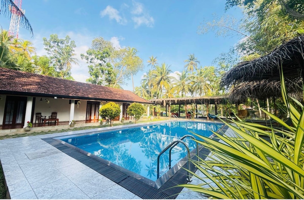 Located in Bentota, a few steps from Induruwa Beach, Mango Tree Villa Bentota provides accommodations with a garden, free private parking, a terrace and a restaurant. The property has room service and a 24-hour front desk for guests.The rooms include a closet, bed linen and a patio with a pool view. All rooms come with air conditioning, a desk. All guest rooms will provide guests with a fridge.Guests at the accommodation can enjoy a continental breakfast.