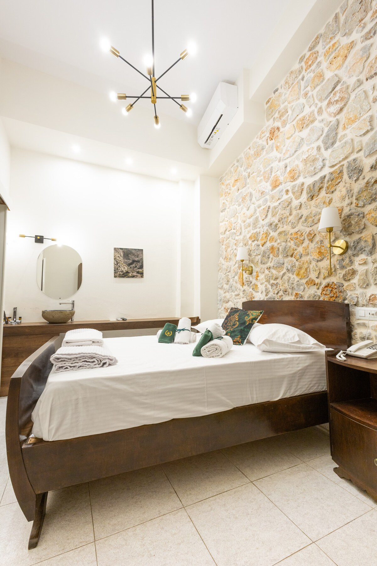 Newly refurbished spacious room with private bathroom, Queen size bed with 30cm mattress, 43' Samsung tv, hairdryer and kettle for tea\coffee. These are serviced apartments, cleaned daily! We are located in Kardamena 200m from the beach and in walking distance from the bars and restaurants! Enjoy comfort and easy access to everything from this centrally located place.