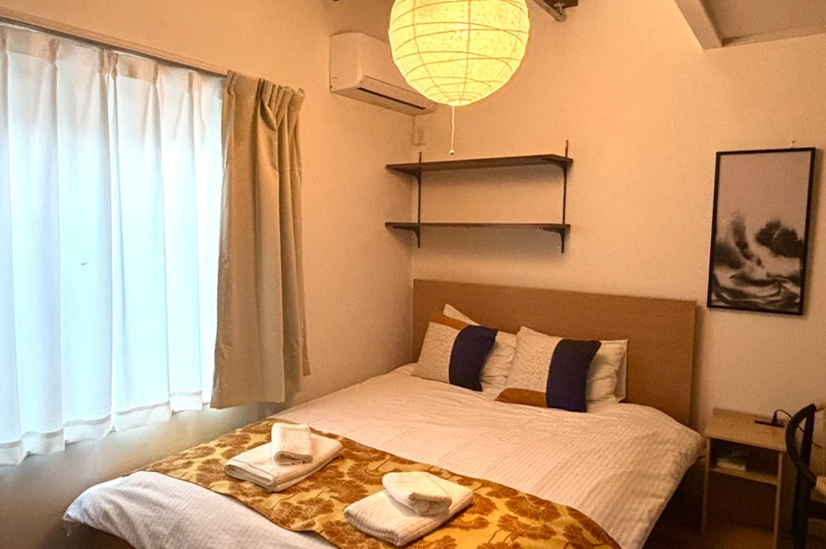 *現在、利用者の間を24時間空けているため、最低2泊以上の宿泊からの受付です。敷地内の駐車場(無料/要事前予約)は、チェックイン日の9時からチェックアウト日の18時までご利用いただけます。基本調味料や炊飯器などをご希望の場合にはお知らせください。 集合住宅の一部をツーリスト向けに使用していますので、共用部分はアプローチ(外階段と外廊下)のみという独立した住居スペースをご利用いただけます。 昭和の雰囲気をそのまま残した2DK(6畳間+4.5畳間+DK)アパートのキッチンには、調理器具や食器、基本調味料など、自炊に必要なものが一通り揃っています。買い出し用にショッピングカートも用意していますので、鎌倉の美味しいお惣菜や新鮮な食材を持ち帰って、由比ケ浜のゆったりした時間の流れをお楽しみください。 朝ごはんスポットがたくさんある鎌倉の滞在を最大限に楽しむには、早寝早起きがおすすめ。ゆっくり家ごはん、翌日は早起きして由比ケ浜から始まる散歩の途中で朝食をとるというプランもオススメです。 由比ヶ浜海岸や海浜公園まで歩いて3分という立地で、鎌倉の主要な歴史的建造物や観光スポットは徒歩圏内です。