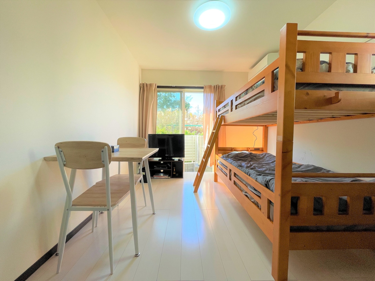 近海岸,可漫步沙滩,赏富士山最佳海岸 适合冲浪、观日落 近车站 温馨双床独立卫浴小公寓