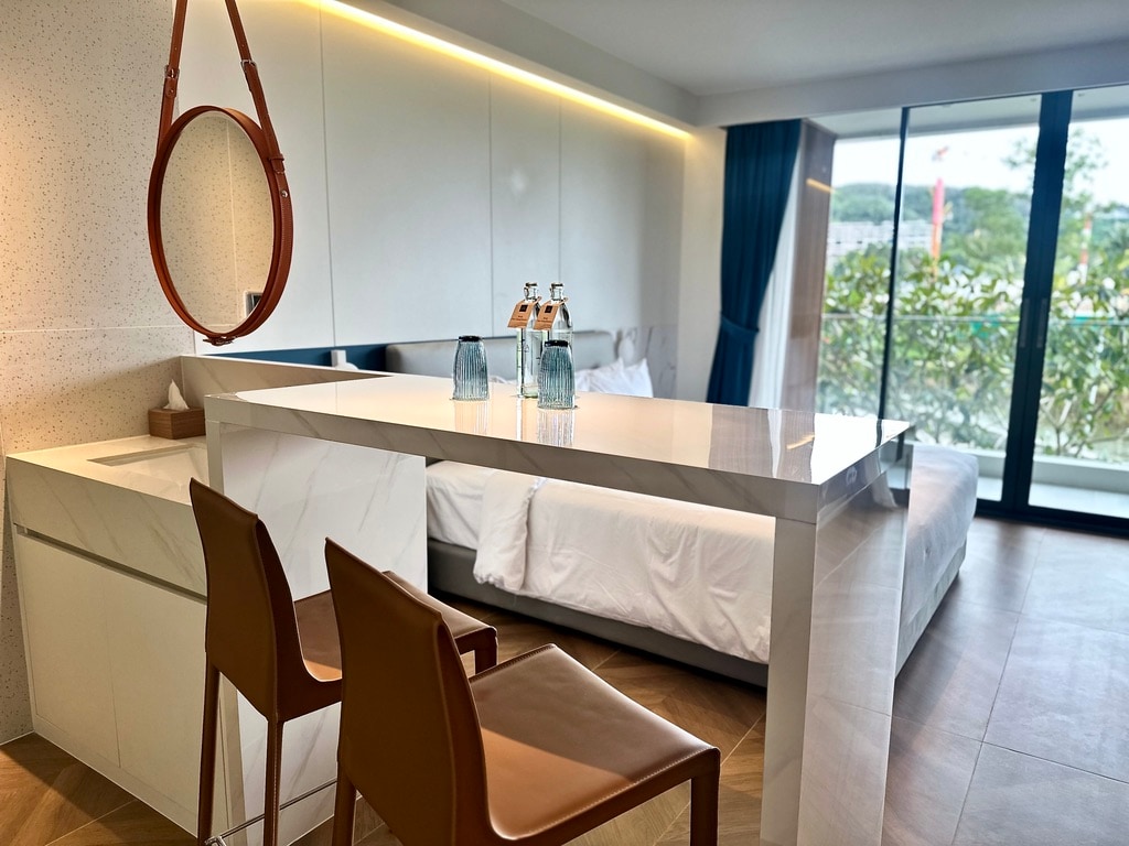 Amaleena Pool Access offers pool-access suites set along the bay in Chalong, giving you a bright and easy place to stay while exploring Phuket. Each suite opens directly to the shared pool, making it simple to unwind the moment you step inside. Located between Rawai and Chalong, just 5 minutes from Chalong Pier and around 15 minutes from Naiharn Beach, so beaches, cafés, nightlife spots, and local attractions are always within reach. À la carte breakfast included