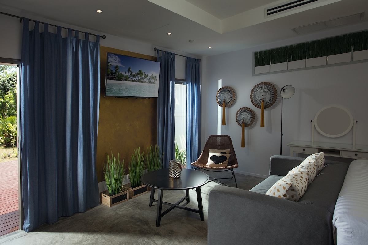 A cozy house with a pool under the shade of palm trees in the heart of Chalong ✅ Pool and sun loungers available 24/7 ✅ Unlimited Wi-Fi ✅ Smart TV ✅ Fully equipped kitchen with all appliances and utensils ✅ Hair dryer in the bathroom ✅ Free motorbike parking inside the resorts territory ✅ Electricity and water included in the price ✅ Cleaning and linen change twice a week included in the price