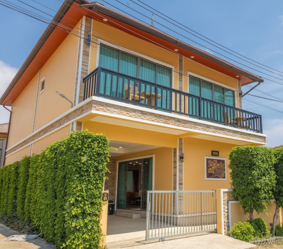 Situated within walking distance to Kamala Beach and directly on the beach road, we offer a 2-bedroom, 2-bathroom upper unit. The property has all the necessary amenities, including a washing machine! It features a full kitchen, a dining area, a sofa, and an outdoor seating space. Restaurants, supermarkets, and other essential services are all accessible on foot, eliminating the need for transportation during your stay. High-speed WIFI, no additional fees for water and electricity!.