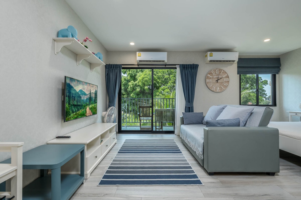 High Tide Suite offers an ocean view & stay 3-4 guests, 5-minute walk to the beach. Spacious suites boast floor-to-ceiling windows that open onto private balconies, a well-equipped kitchenette, and a large bathroom with a bathtub. After a day at the beach, relax in steam room & sauna include a games room within the building. Included: Utility Fee / Required refundable security deposit 5,000THB cash upon check in & refund upon check out (If no any damage) Every 7 days cleaning & change linen.