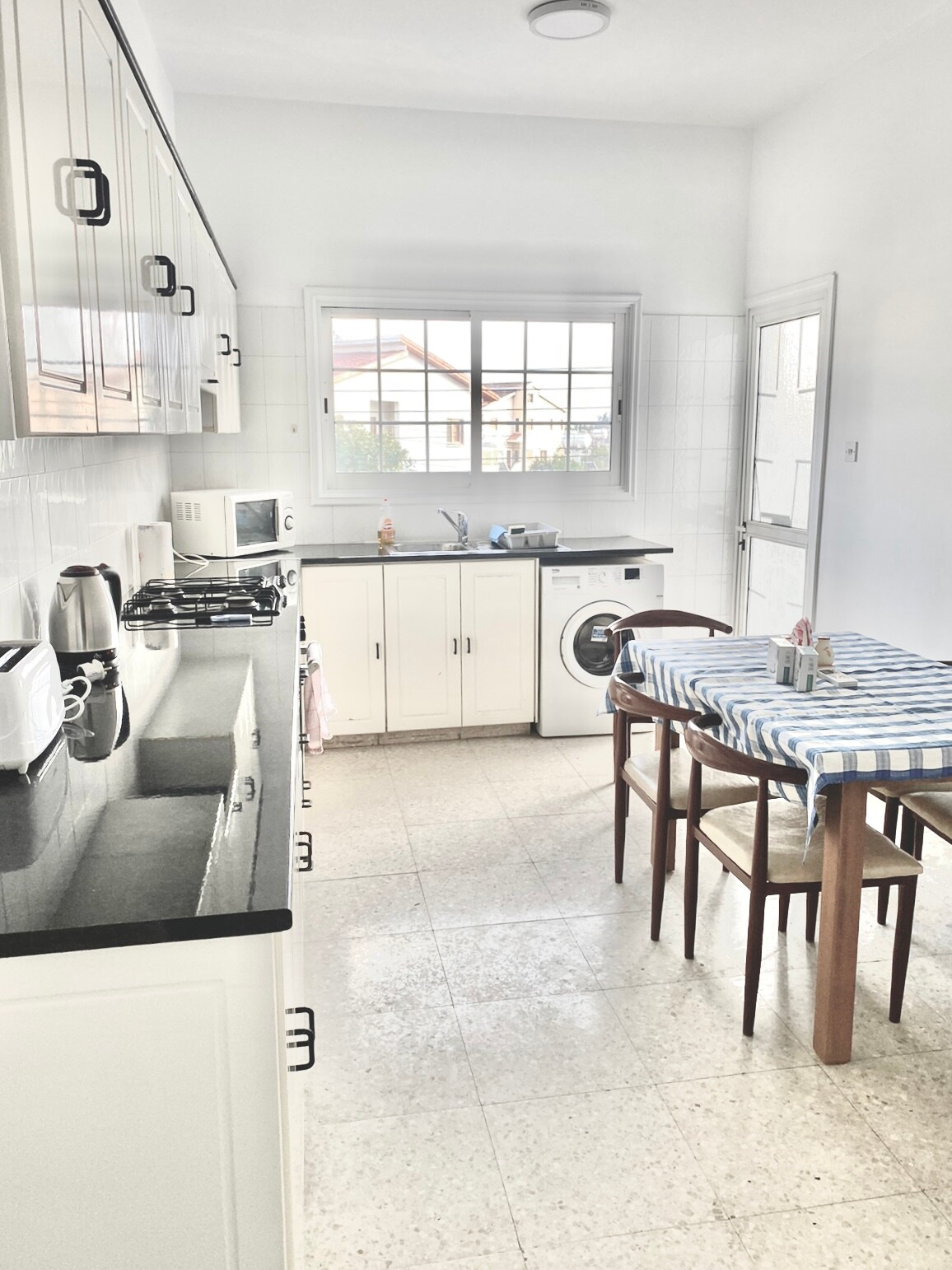 The flat is located in a quiet and well maintained building, in a no through beautiful road, 5-10min walk from Finikoudes promenade and beach. Large living room with a sofa bed, kitchen, a bedroom, bathroom renovated in Nov 24, balcony with distant sea view. The center and the main bus terminal is a 5 min walk, so if you don't rent a car, you will still be in the middle of everything. 200/30 Mbps internet. Zorbas bakery & ready meals is across the street. To see more flats, go to our profile