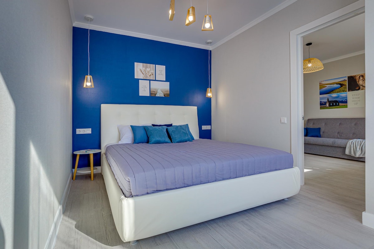 Welcome! We’re proud to offer one of the best guest experiences in the city! Sweet Home is a peaceful retreat featuring two cozy apartments, each thoughtfully designed with comfort and style in mind Located within minutes from Mega Center, the apartments offer beautiful window views of the majestic mountains. With soothing blue tones and warm wooden accents, Sweet Home creates the perfect balance of tranquility and elegance We are looking forward to hosting you