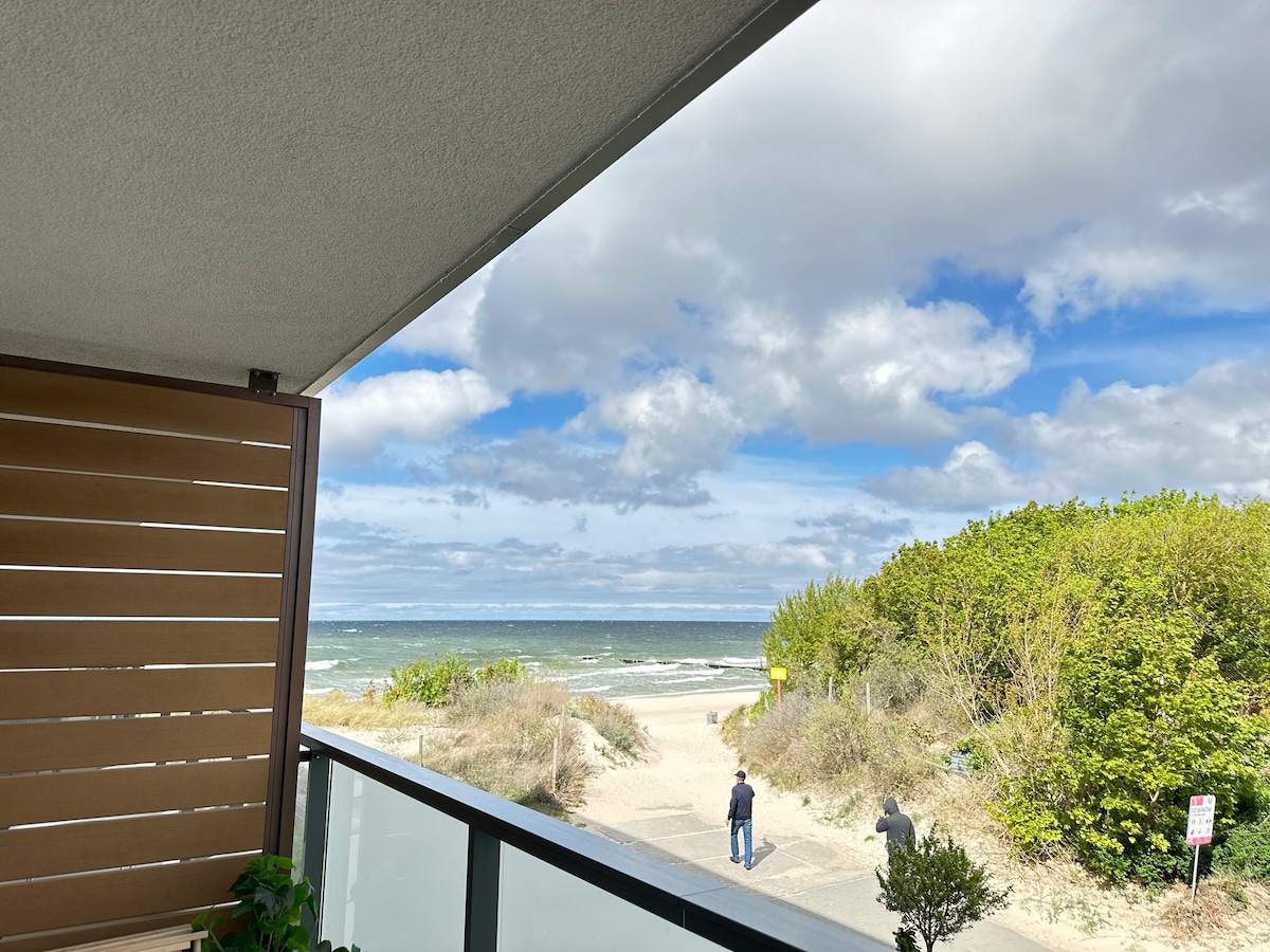 Direct water view: Cosy retro-style flat with large balcony, 600m from the beach and the centre. Bed linen, towels and final cleaning included in the total price. Perfect for families. Indoor swimming pool and sauna in the house. Two trekking bikes free of charge included Tourist tax of 3 PLN per guest per night is paid on site.