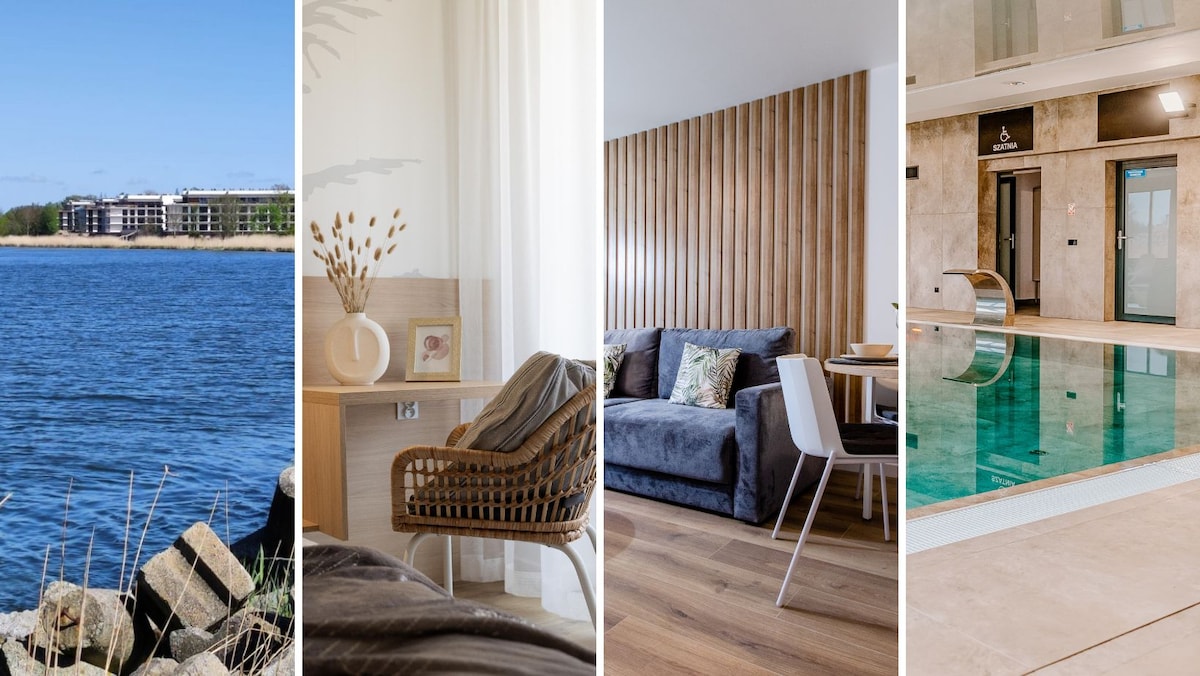 New, comfortable apartment with access to the spa area, which includes: swimming pool, sauna, jacuzzi, paddling pool for children and gym. The apartment includes a place in the underground , closed car park . The Water Wings apartment consists of a livin