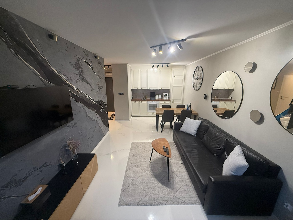 Sauna - Jacuzzi/Whirlpool - Massagesessel - 2 x 75 Zoll Fernseher - 1 x 65 Zoll Fernseher - WIFI - Eiswürfelmaschine - Safe - Voll ausgestattete Küche - polnisches TV Unsere 70 m² große Wohnung liegt direkt an der Flaniermeile von Dziwnow und bietet Platz für bis zu 4 Personen. 150 Meter zum Meer und 100 Meter zum neugebauten Dziwnower Hafen. In unmittelbarer Nähe findet man einen modernen Kinderspielplatz und einen sehr geplegten Park mit diversen Outdoorsportgeräten.