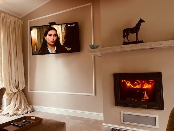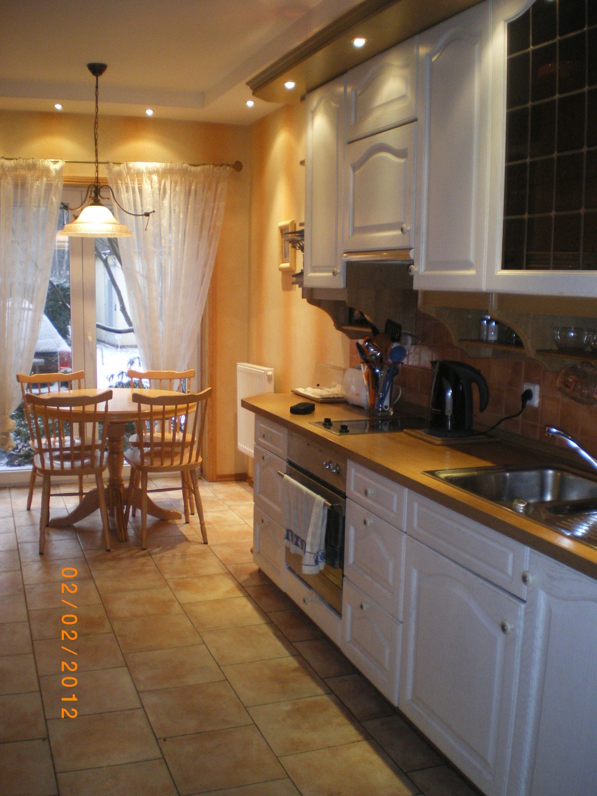 Das Ferienhaus, verfügt im unteren Bereich über einen Wohnraum mit einer Couch, einen Couchtisch, eine Nachtlampe, Flachbild-Sat TV , einen Essbereich mit 1 Tisch und 6 Stühlen, eine voll ausgestattete Küche. Das Badezimmer mit einer Dusche und einem Haartrockner. Oben befinden sich 2 Schlafzimmer. Im einem steht ein Ehebett160x200cm, 2 Nachtschränke mit Nachtlampen, eine Kommode und einen Schrank. Im anderen 2 einzeln Betten 90x200, 2 Nachtschränke mi Nachtlampen und einem Schrank.