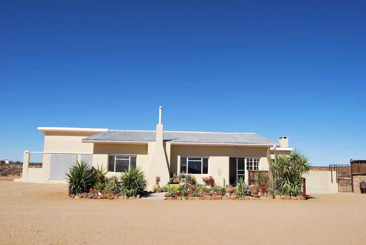 Say HELLO FRESH air& BREATHTAKING sunsets! This chalet is a partly solar powered wooden house overlooking the beauty that is Namaqualand. Equipped with an open plan kitchen/living room with sofa bed. WiFi& smart TV. Upstairs; bedroom with a queen & single bed, en-suite bathroom, balcony overlooking farm. Outside entertainment area; camp like braai, perfect for sundowners & picture perfect sunsets!All sorts of animals roaming the grounds-ideal for kiddies to enjoy and appreciate real 'farm-life’.